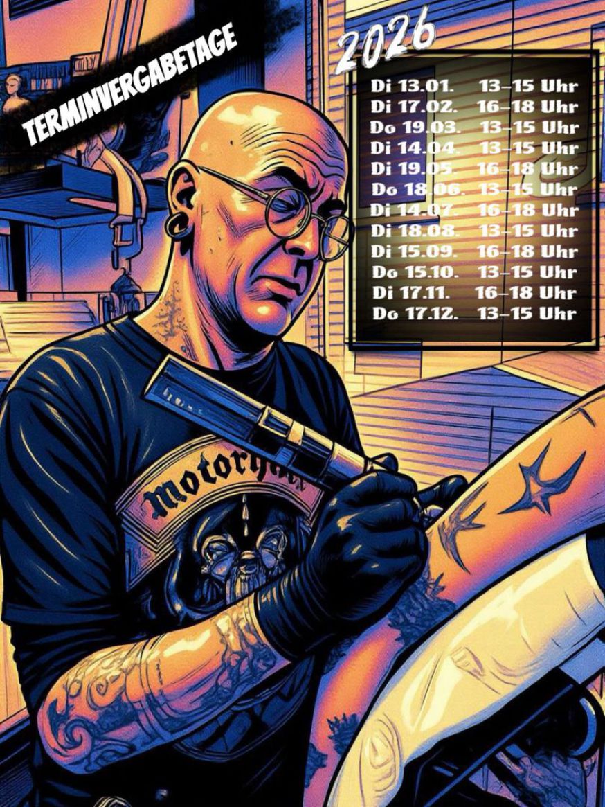 Jeder, der sich tätowieren oder piercen lassen möchte ist bei uns richtig. Auch wenn ihr Euch noch nicht sicher seid und Euch erst mal informieren möchtet seid Ihr immer willkommen. Dazu bitte einen Termin vereinbaren.
